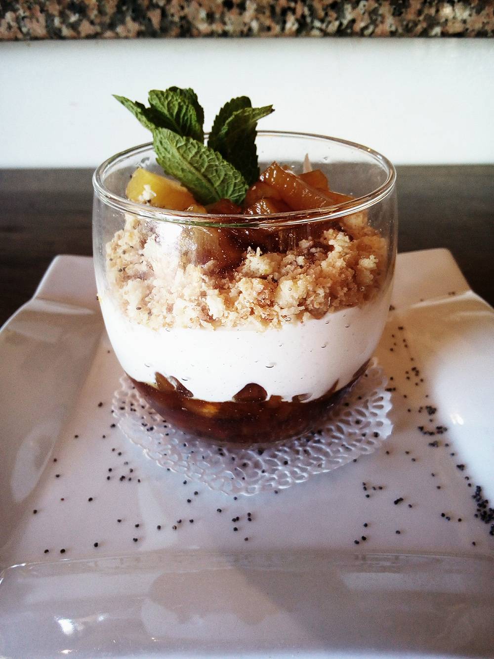 Crumble coco revisité, ananas caramélisés et fromage blanc 8€