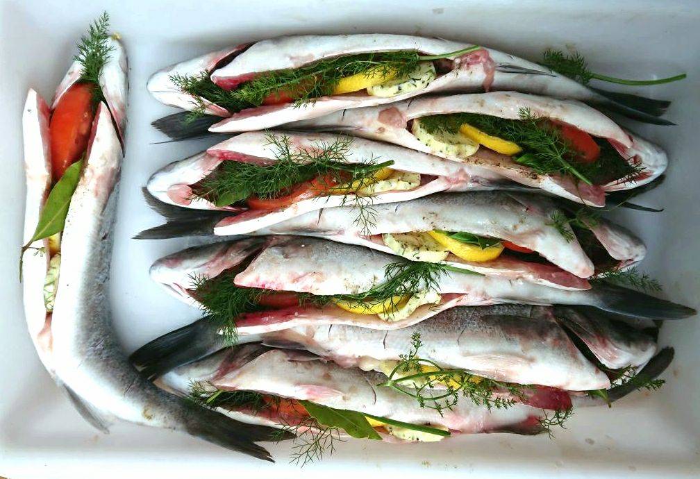 Cuit au four, entier : - loup/bar farci (tomate, citron, herbes)