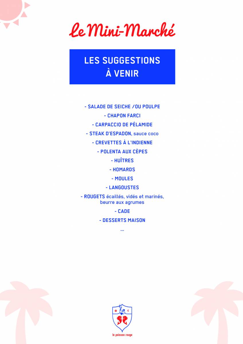 les produits de la mer seront mis à l’honneur grâce à notre vitrine à poissons mais aussi grâce à notre collaboration avec des